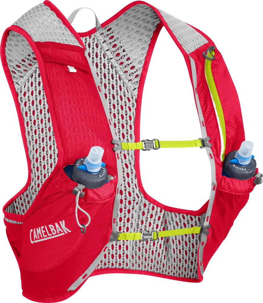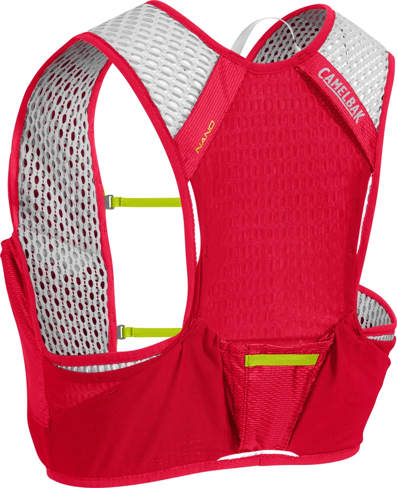 Met het Nano vest van Camelbak weet u zeker dat u optimaal uitgerust op pad gaat met minimale extra inspanning. Dit handige vest heeft namelijk twee strategisch geplaatste houders die zorgen dat u altijd een bidon binnen handbereik zult hebben. Deze vakken zijn namelijk ideaal voor de twee meegeleverde bidons van 500 ml. Om te zorgen dat u niet snel een klam gevoel zult hebben is de achterkant van dit vest bekleed met een luchtig mesh gaas dat voor een optimale ventilatie zal zorgen. Door het ontwerp en het kliksysteem aan de voorkant, wordt het gewicht perfect verdeeld en krijgt u geen last van uw rug. Dit vest mag niet ontbreken aan uw outdoor run outfit!